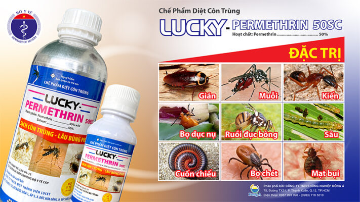 LUCKY_PERMETHRIN 50EC là chế phẩm diệt côn trùng như: MUỖI – KIẾN – GIÁN các loại côn trùng khác. Có tác dụng tức thì, hiệu lực cao và kéo dài để ti.êu diệt các loại côn trùng g.ây h.ại trong nhà ngoài ra LUCKY_PERMETHRIN 50EC còn có tác dụng xua đuổi các loại con gây khó chịu trong nhà, chuồng trại, ruộng rẫy và nơi công cộng ….