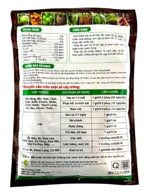 - Kích thích cây ra rễ thần tốc, giúp cây lấy được nhiều dinh dưỡng, cho cây lá xanh tốt, trổ nhiều bông, đậu nhiều trái.