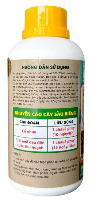 | Trái mới đậu đến trước thu hoạch | 1 chai/2 phuy (15 ngày/ lần) |