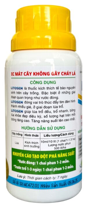 LITOSEN 1.9EC là thuốc kích thích tế bào nguyên sinh trên cây trồng. Đặc biệt ở những giai đoạn quan trọng như rước đòng.
