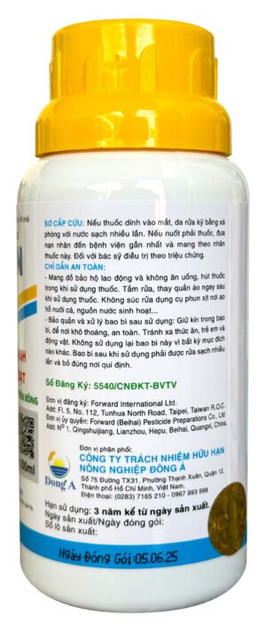 Cách dùng: 10ml/10 lít (1 chai/1-1.3 ha) Lượng nước phun 500 lít/ha.