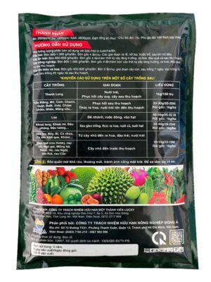 | Sầu Riêng, Mít, Thanh Long | Làm cơi đi đọt. Nuôi trái Phục hồi cây suy, cây sau thu hoạch | 25-30g/20-25 lít Rải gốc: 1kg/ha |