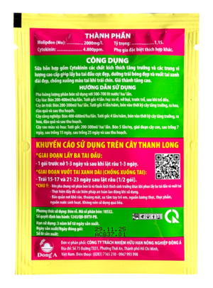 Molipđen (Mo): …………. 2000mg/l. Cytokinin: ……………….. 4.800ppm. Tỷ trọng: ………………1,15. Phụ gia đặc biệt thích hợp khác.