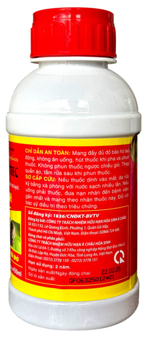 Công dụng: Hỗn hợp Phosalone và Cypermethrin có tác dụng xông hơi mạnh, vị độc tiếp xúc, thấm sâu. Diệt trừ nhanh các loại sâu, rầy, rệp… Hiệu lực thuốc kéo dài sau mỗi lần phun…